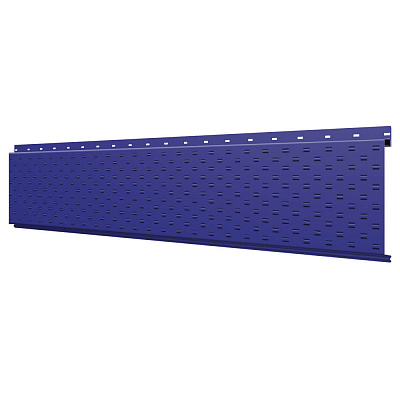 Линеарная потолочно-стеновая панель с ПЕРФОРАЦИЕЙ для вентиляции цвет RAL5002 Синий Ультрамарин применяется в качестве софитов для подшивы крыши, наружной и внутренней отделки потолков, стен, фронтонов фасада дома в Караганде.