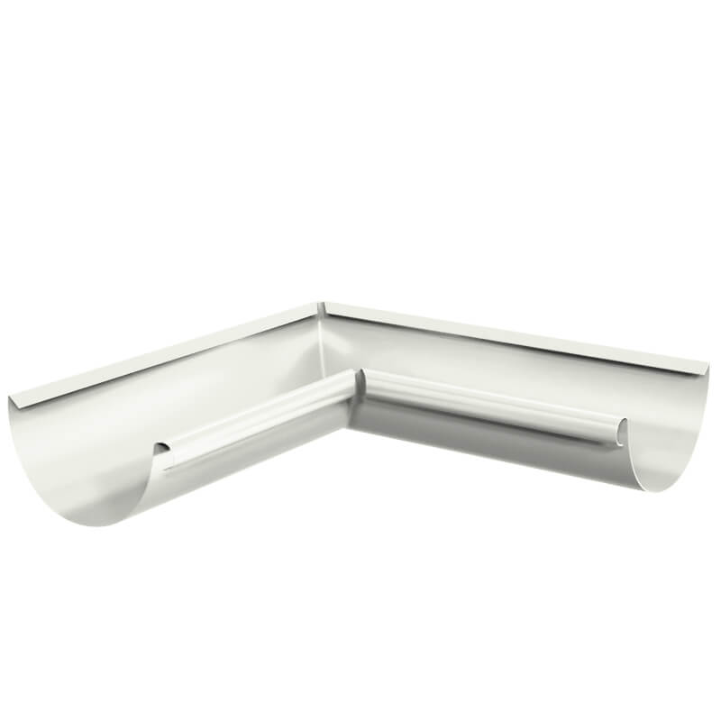 Угол желоба водостока внутренний 90 градусов d125мм RAL 9010 Белый металлический