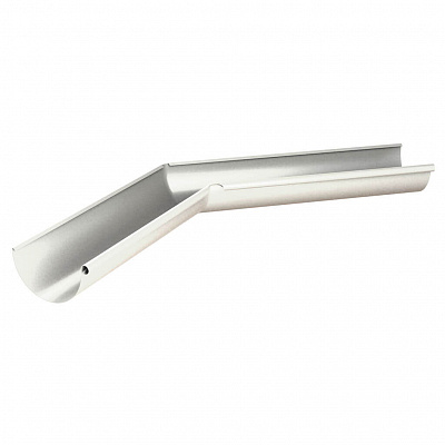 Угол желоба водостока внутренний 135 градусов d125мм RAL 9010 Белый металлический - используется для надежного сопряжения двух желобов между собой на внутренних нестандартных углах 135 градусов карниза кровли. Угол желоба изготовлен без сварных сопряжений, методом прессования (глубокая вытяжка), что придает ему дополнительную коррозийную и механическую стойкость.
